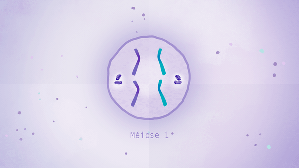 • C‘est l’heure de la recombinaison génétique.  Chaque chromosome et sa copie se rapprochent et s’échangent des sections de génome. Ce brassage crée des combinaisons uniques de chromosomes dans chaque gamète.